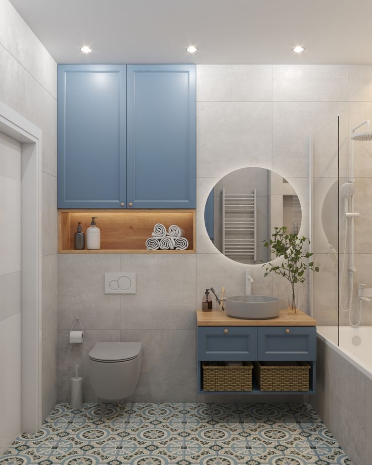 Ванная комната — это место для расслабления и уединения. Светлые и чистые тона, такие как белый, голубой или светло-зеленый, помогут создать атмосферу свежести. Декор можно дополнить яркими акцентами, такими как коралловый или бирюзовый, для добавления интереса.